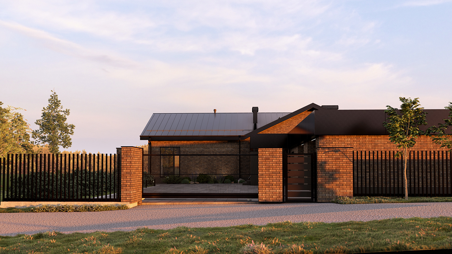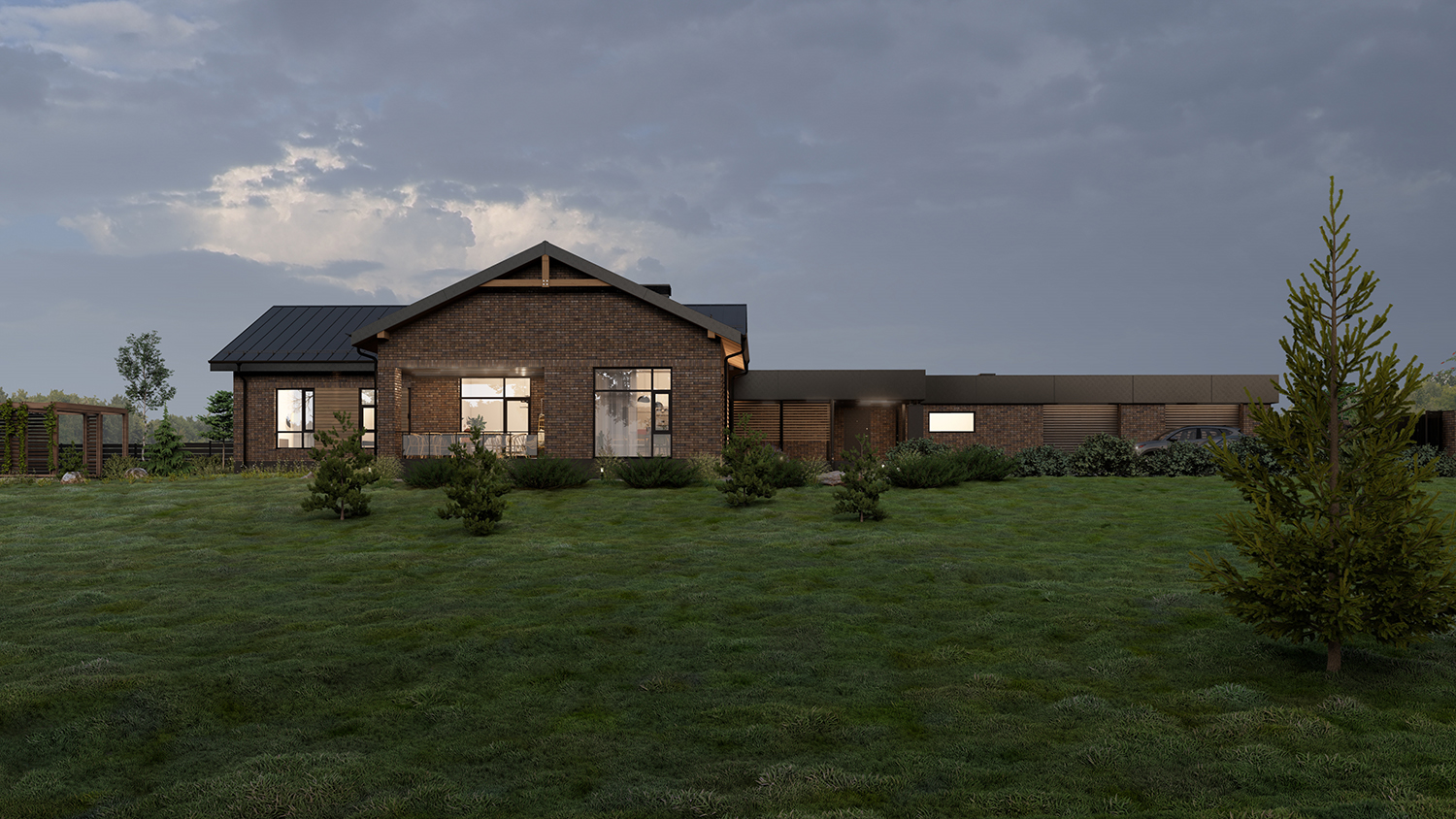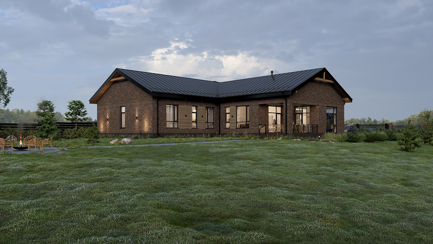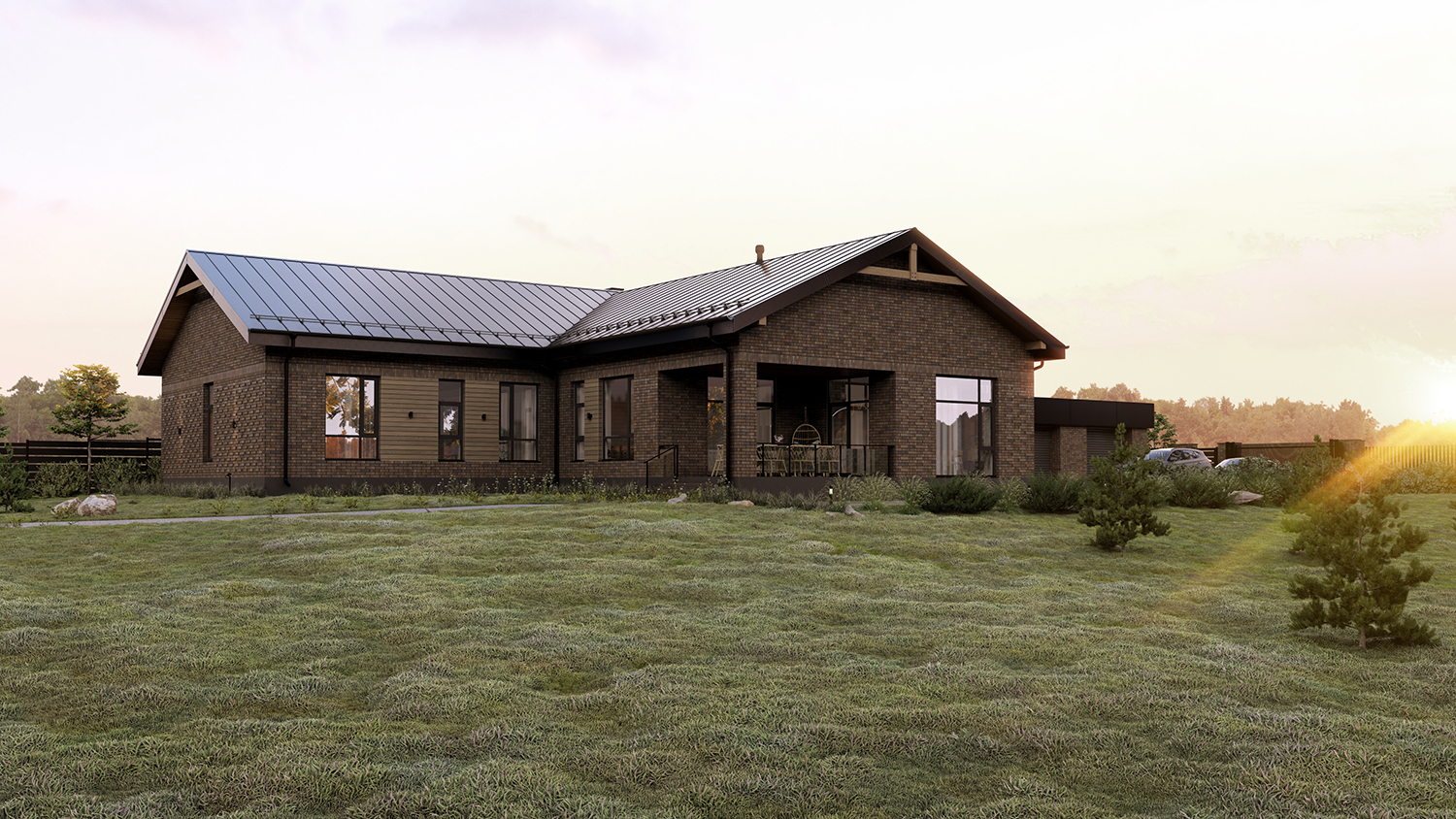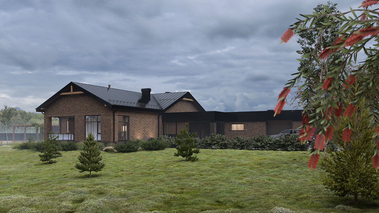 Дом расположен на рельефном участке, и основными видами открыт на нижележащие просторы.