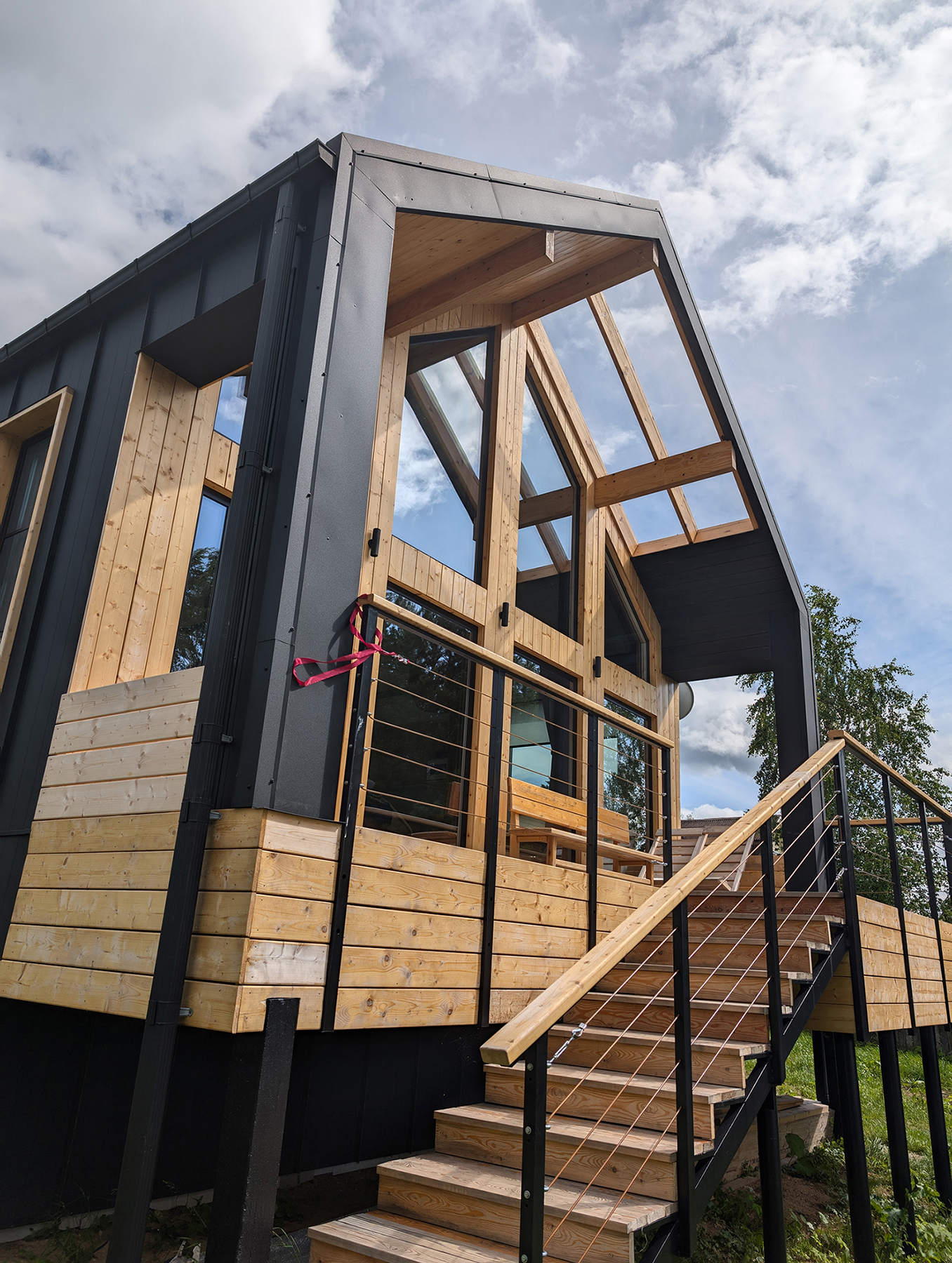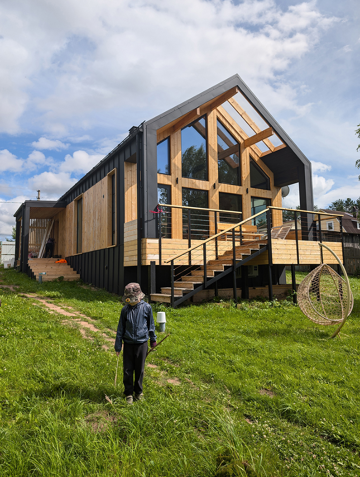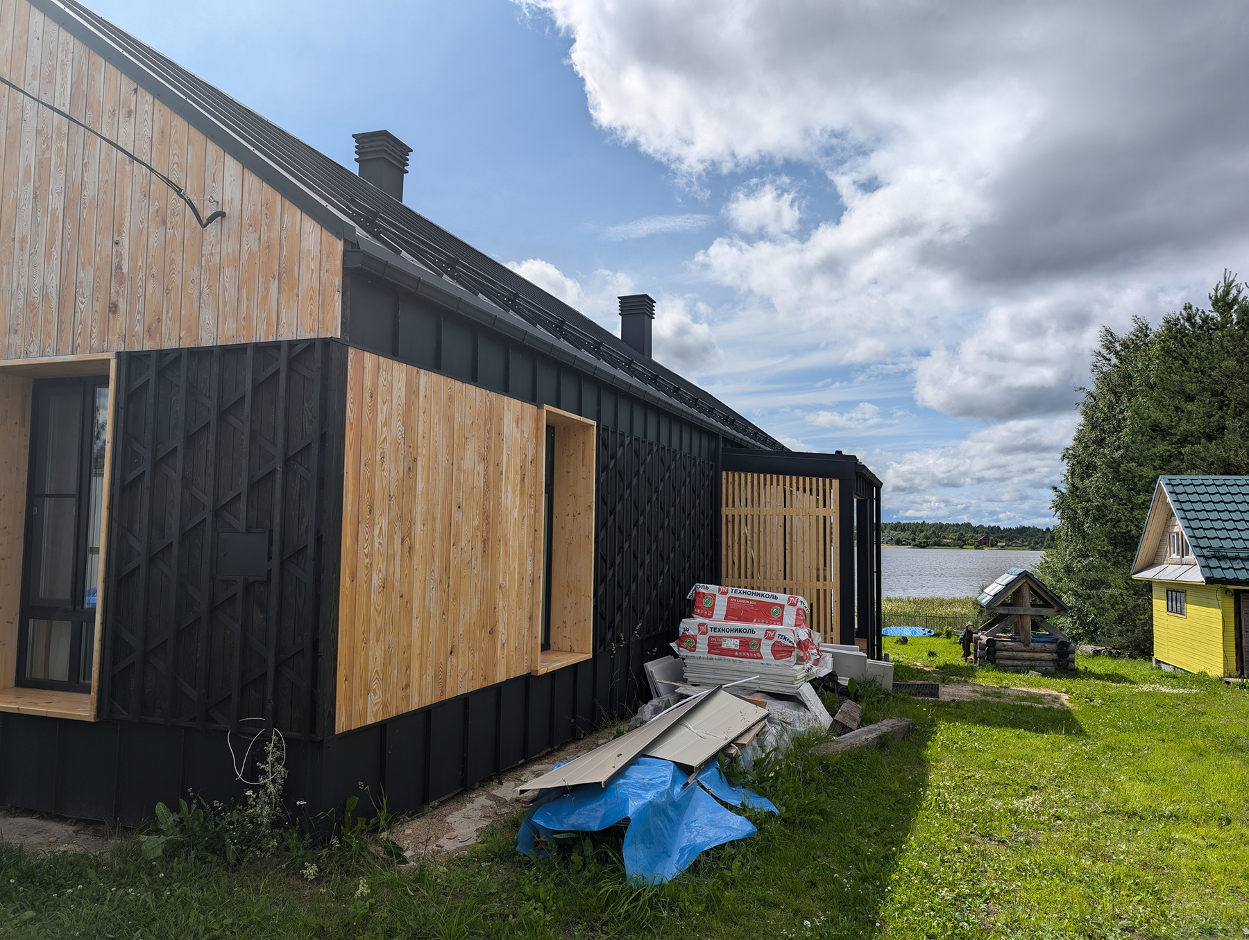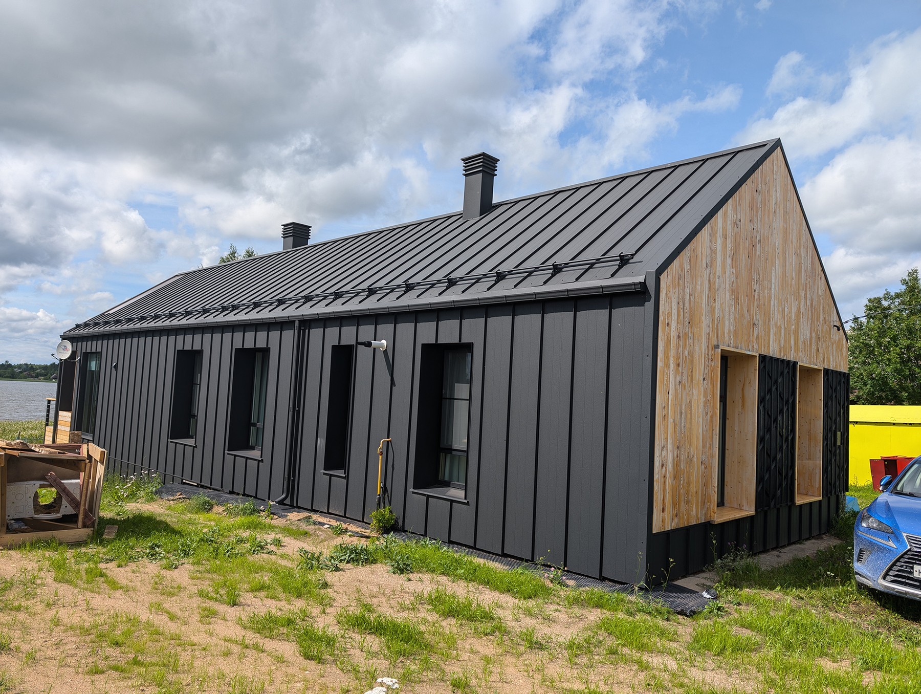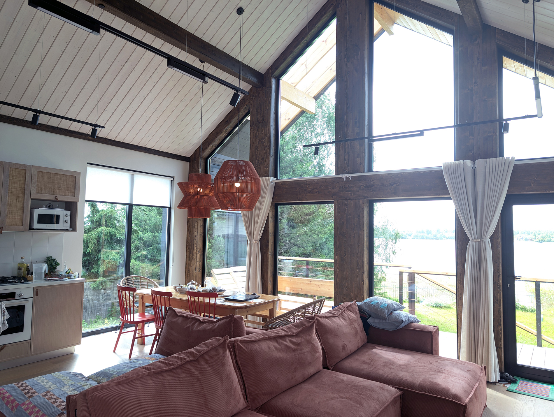 - Это проект реконструкции дома для загородного отдыха на берегу озера. Внутри бревенчатый сруб и новый каркасный пристрой, снаружи barnhouse с изюминкой. В нем мы миксовали стильный минимализм с элементами a la rus.