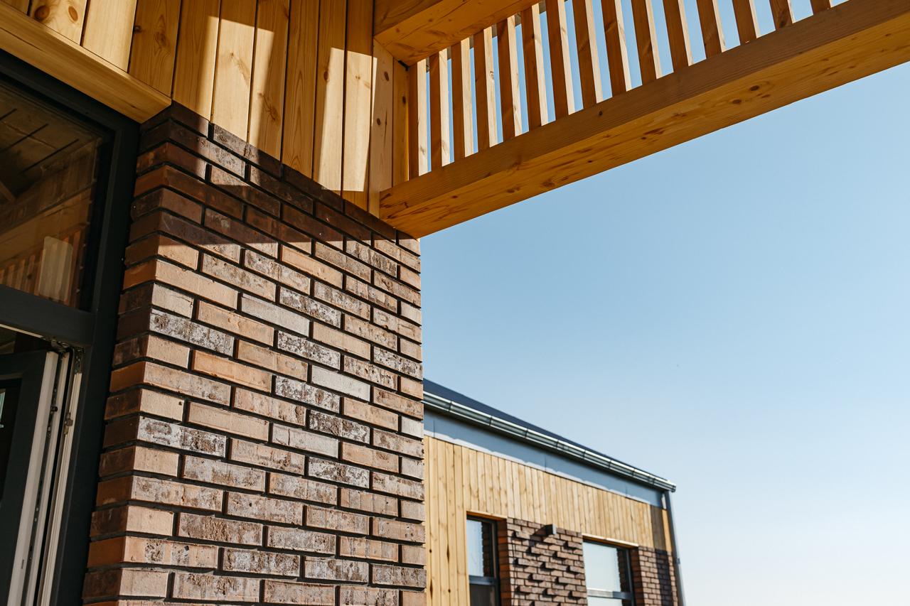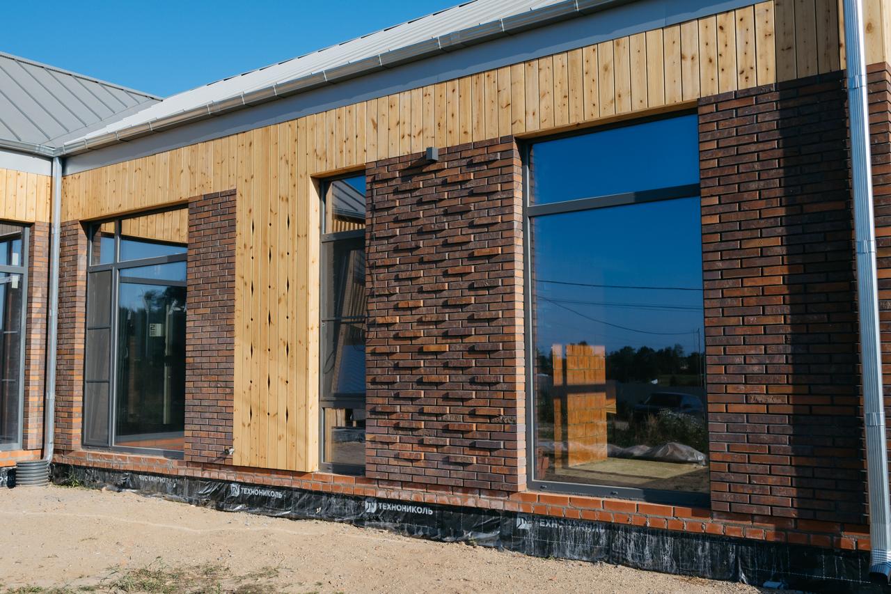 – Стены 640мм: керамический камень двойной поризованный 2.1НФ + клинкерный кирпич + планкен с утеплением